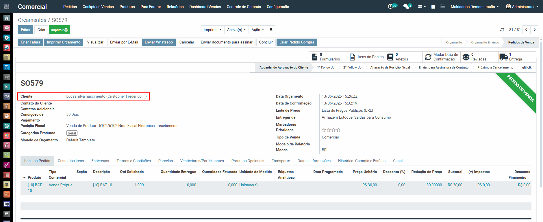 Adicionamos a opção de ao realizar um orçamento/faturamento selecionar um contato de um parceiro. Conforme exemplo abaixo: