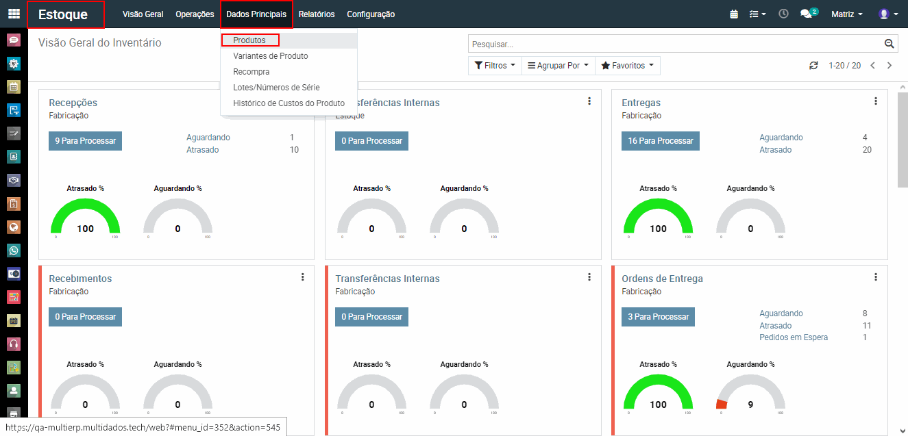 1- No menu inicial acessamos o módulo estoque.